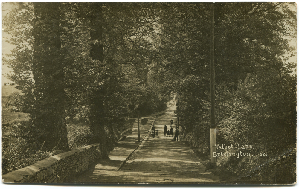 The photograph is believed to have been taken by Fred Viner, and the postcard published by Viner & Co., Publishers. Bath. This picture also appears under the banner of "VINER BROMO CARD." where sometimes it's also credited to Scholastic T. Co. Ltd. Bristol. The front carries the title "Talbot Lane, Brislington." and the reference number "1226". See our notes on Fred Viner for more information about this photographer and postcard publisher, and their work in Brislington.