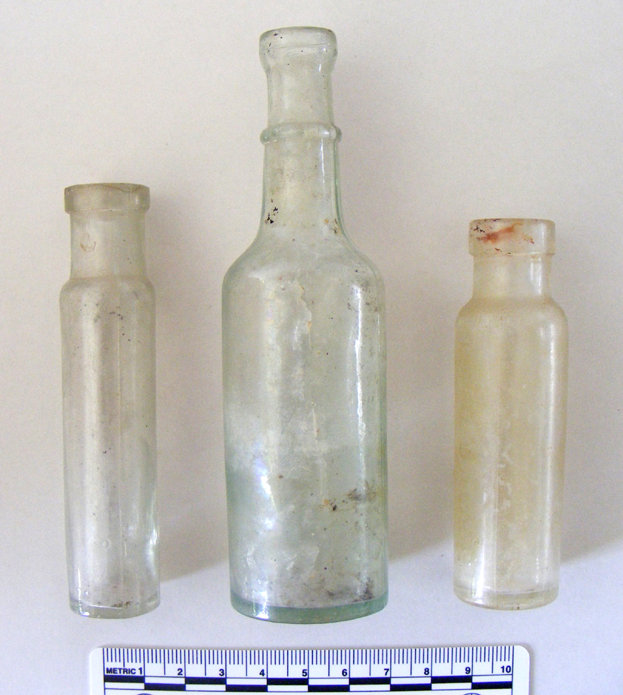 This collection of clear glass bottles was found apparently dumped behind an old advertising hoarding. Publications bearing advertisements for other bottles from the same find spot date to the early 1920s.
