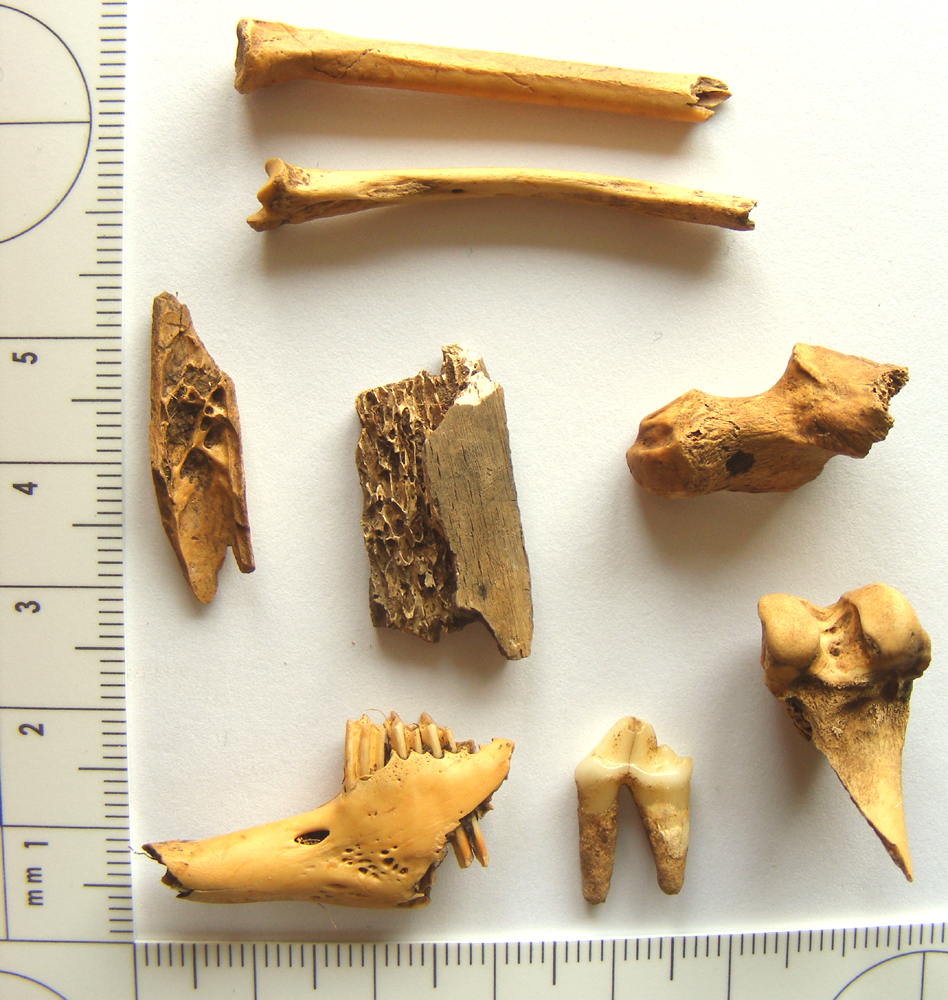 It may take a specialist to identify small bones such as these, but they can help shed a light on the sort of habitat in the vicinity of the find spot (some animals can range over considerable distances, and predators may also move their prey to new locations). Occasionally, they may indicate the sort of food people were eating.
