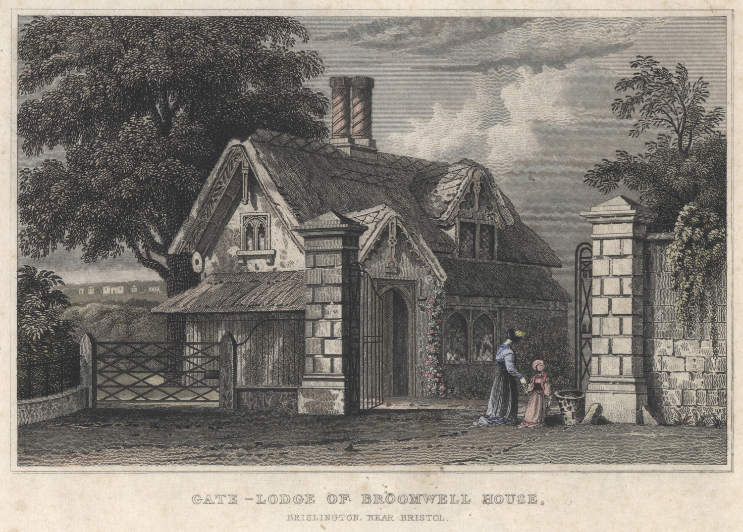 This steel engraving shows the Gate Lodge of Broomwell House, which used to stand to the west of the junction of Sunnydean and Wick Road. At that time, Broomwell House was inhabited by George Weare Braikenridge, a keen collector of historical curiosities. He also famously commissioned a variety of artists to depict sites of local interest, many of which were in Brislington. The Braikenridge Collection (which is largely in public hands) gives this community a possibly unrivalled collection of documentary images from its time as a village in the early 19th century.