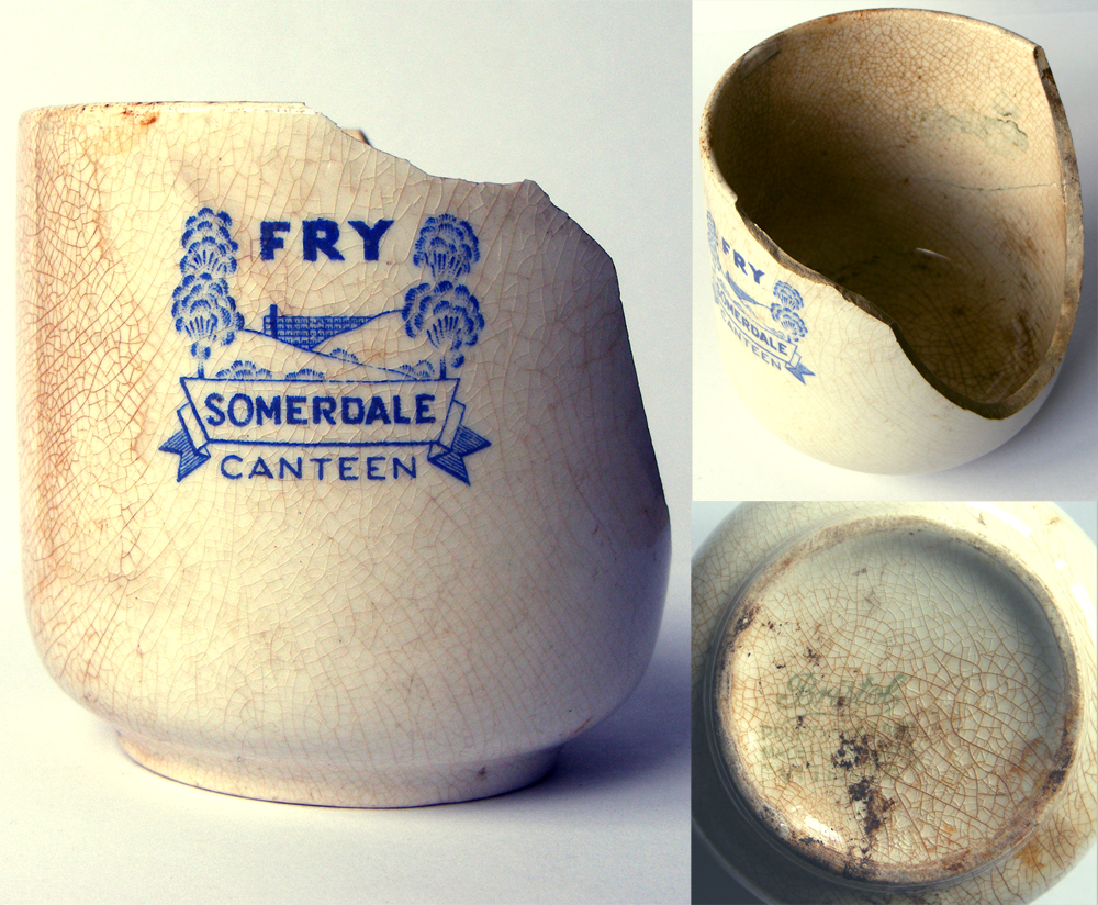 Cup (handle broken away) from the former Fry (later Cadbury) chocolate factory at Keynsham.